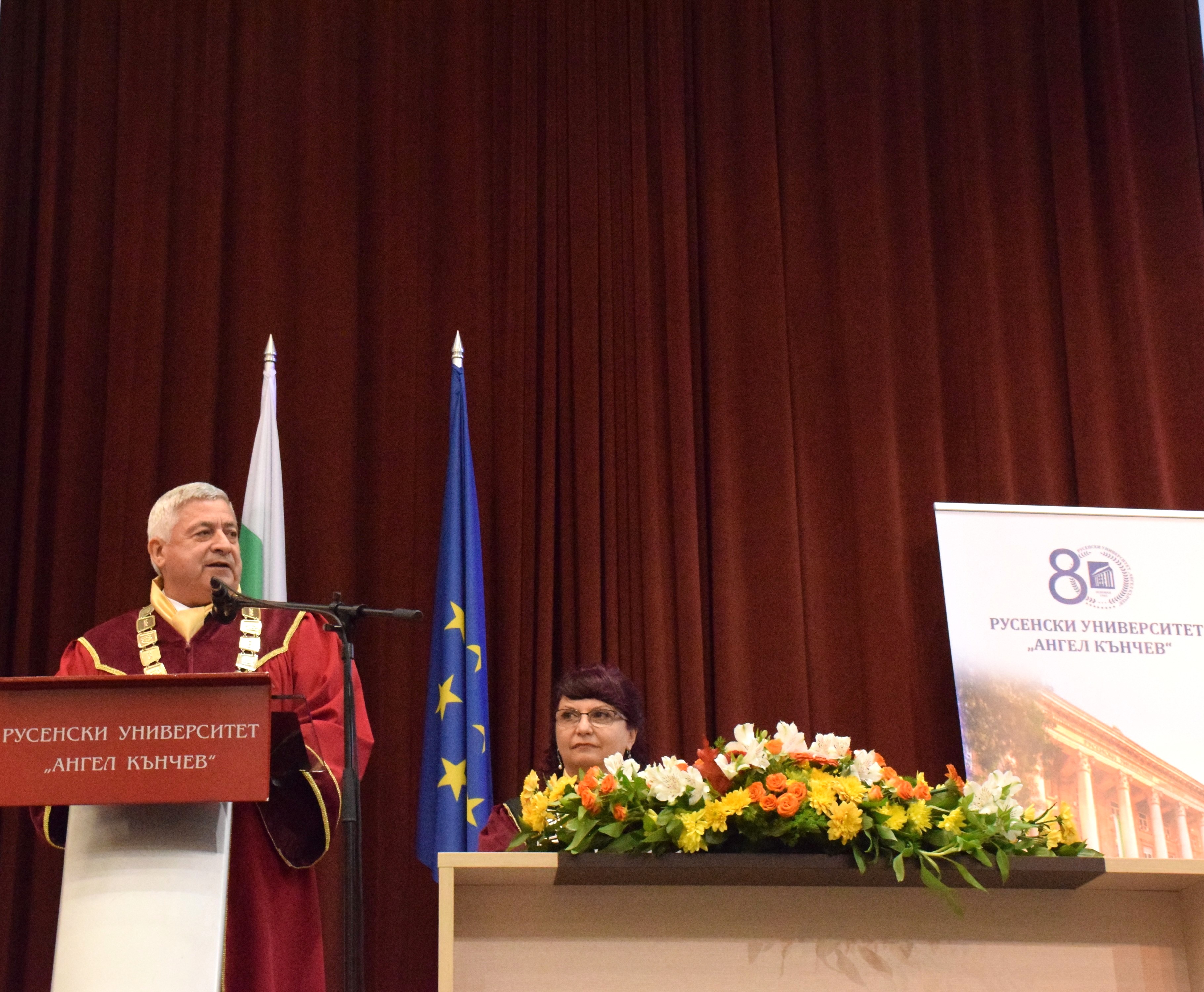 The solemn ceremony was opened by Rector of the University of Ruse, Associate Professor Desislava Atanasova, PhD. She then gave the floor to Associate Professor Tanya Grozeva, PhD – Secretary General of the University to declare the legality of the procedure.