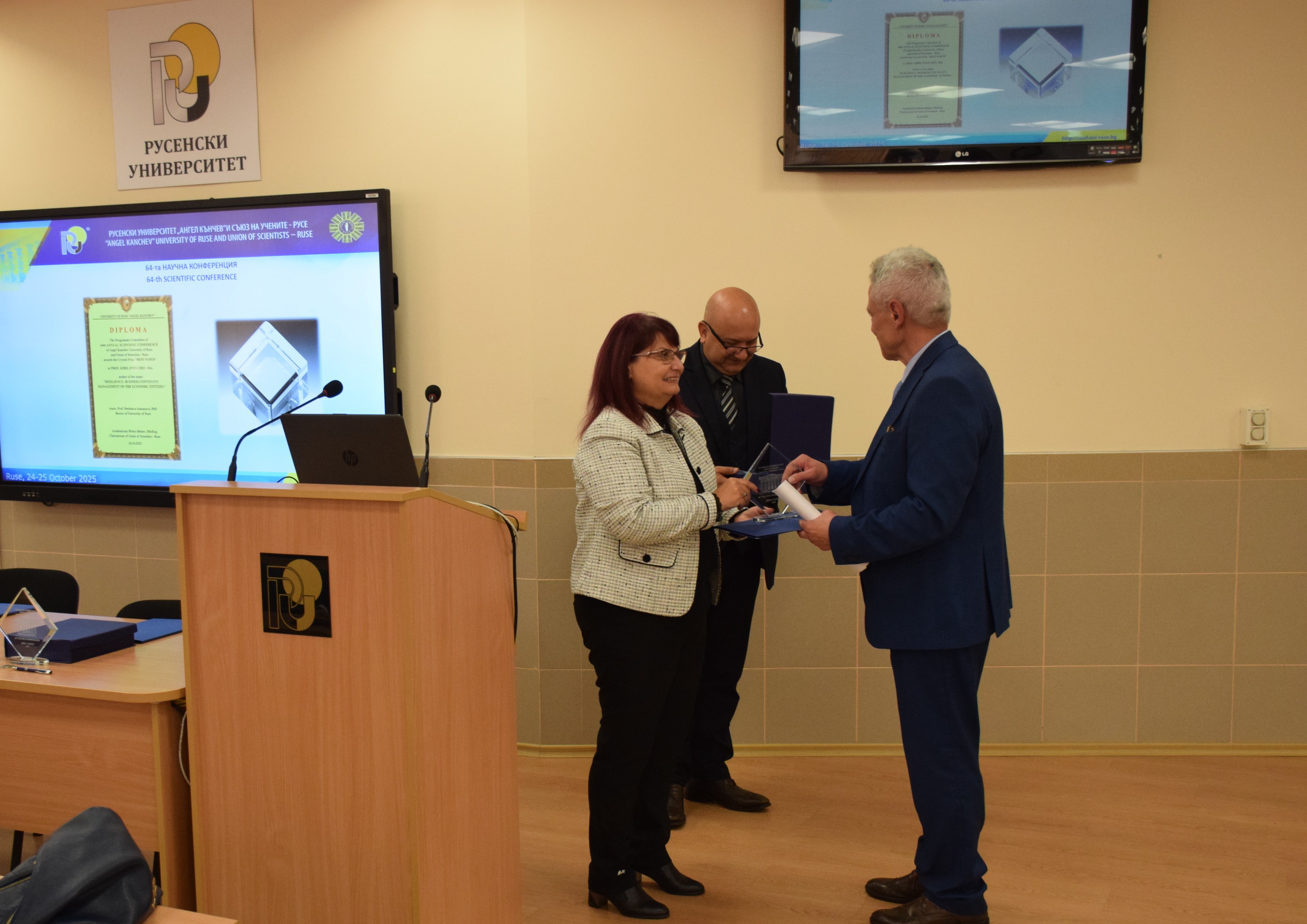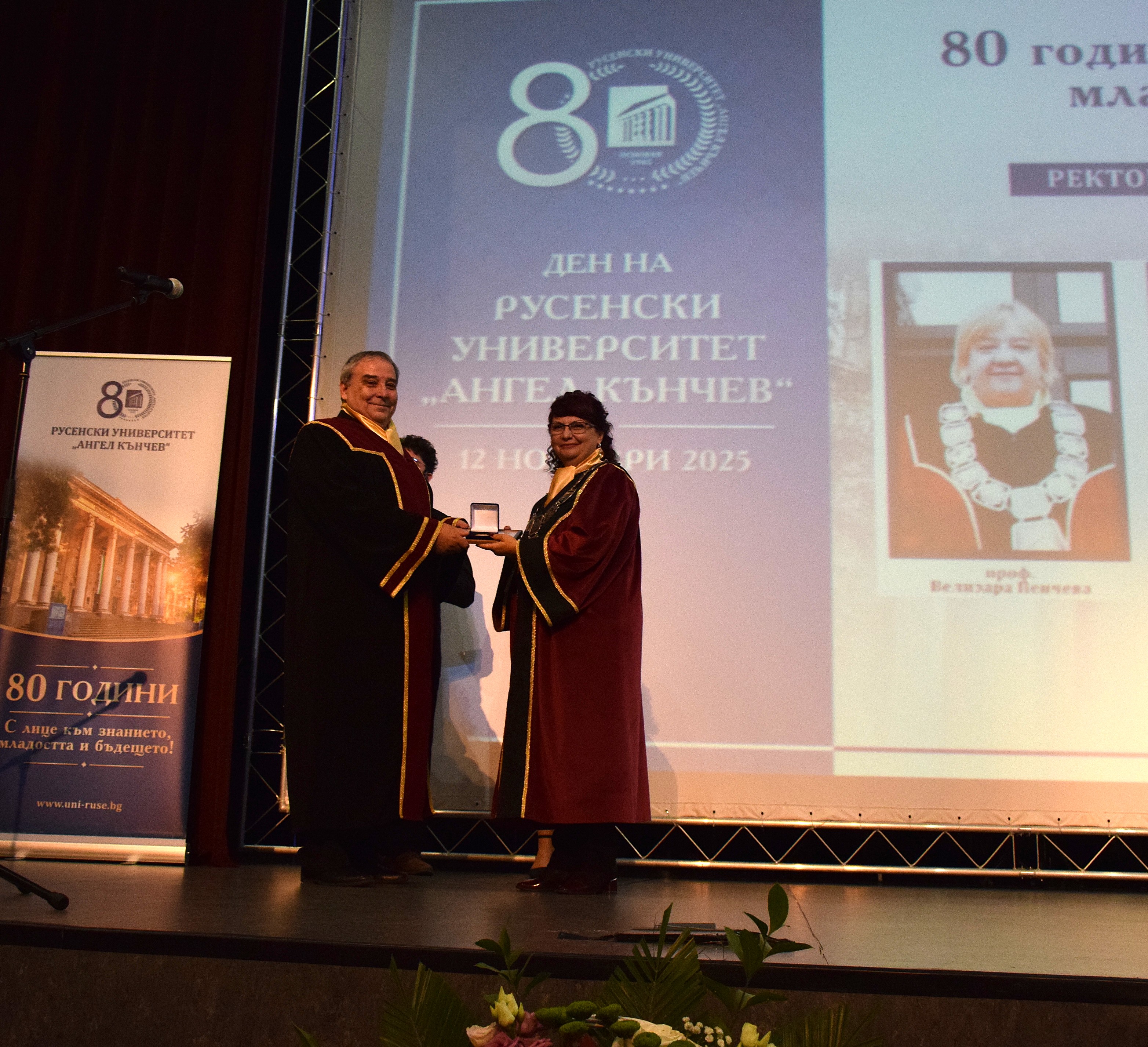 Guests at the ceremony included the Rector of the University of Ruse "Angel Kanchev", Assoc. Prof. Desislava Atanasova, PhD, Acad. Hristo Beloev, Honourary Rector and Chair of the University General Assembly, DscEng, Vice-Rectors Prof. Teodor Iliev, PhD and Assoc. Prof. Galina Ivanova, PhD.