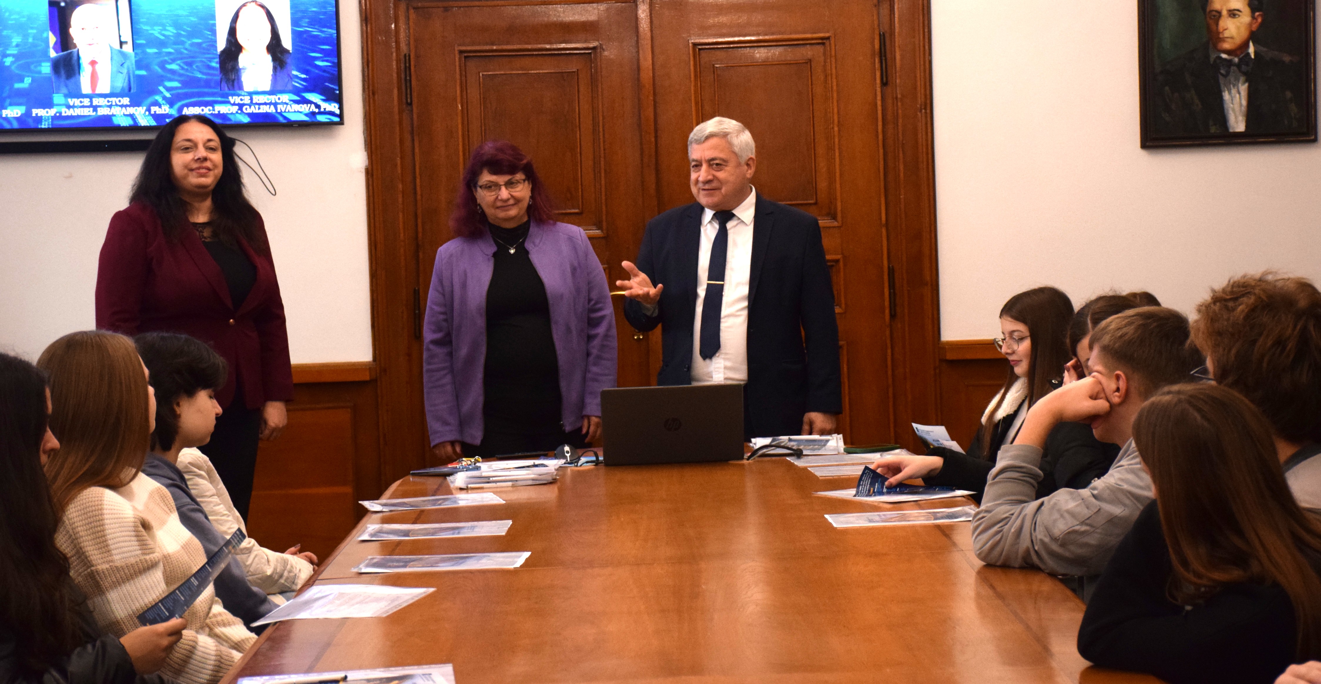 The guests were welcomed by the Vice-Rectors Professor Teodor Iliev, PhD, Professor Gencho Popov, PhD and Associate Professor Galina Ivanova, PhD.